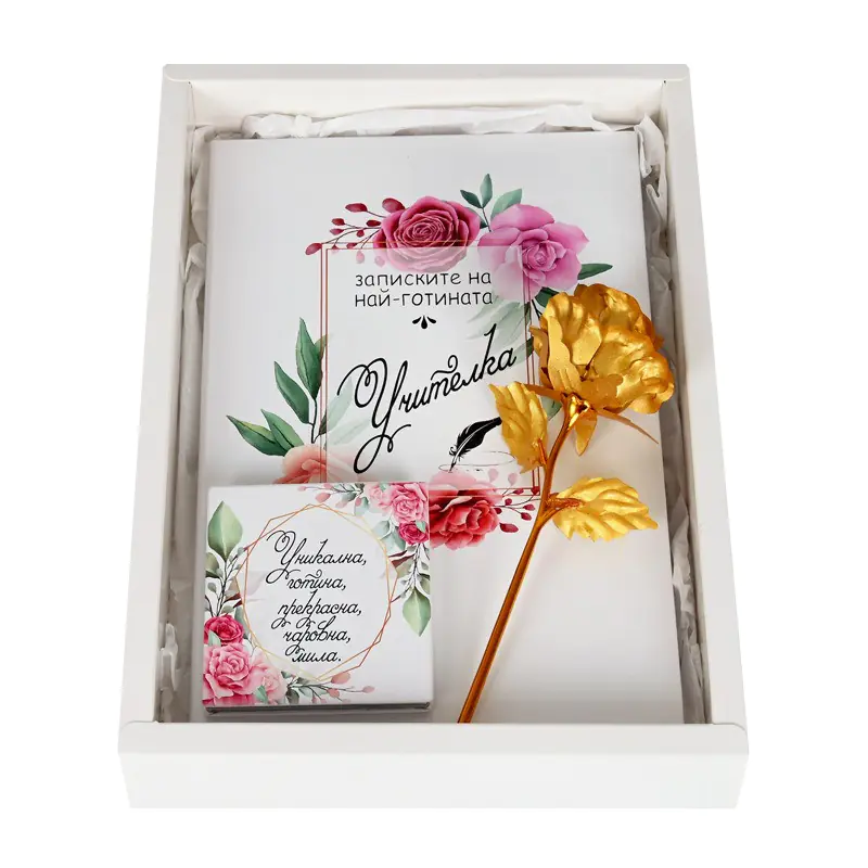 Подаръчен комплект „Учителка“, изненадайте вашият учител с уникален подарък! Този нежен и стилен подарък е идеален начин да изразите своята обич и благодарност в този специален ден! 🌹